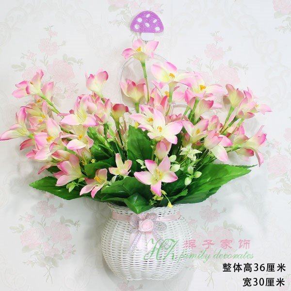 塑料家居花花子花插花卧室绢花装饰壁挂客厅艺术花篮挂花辉假热门设计联盟服务商