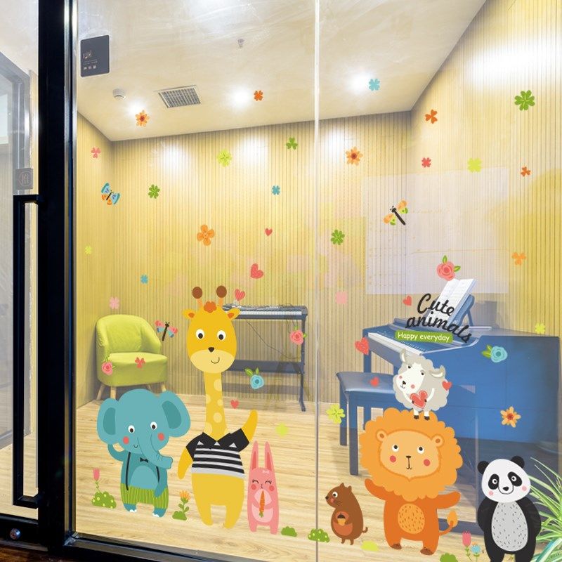 卡通儿童房卧室装饰品可爱动物墙贴纸创意幼儿园店铺玻璃橱窗贴画热门设计联盟服务商